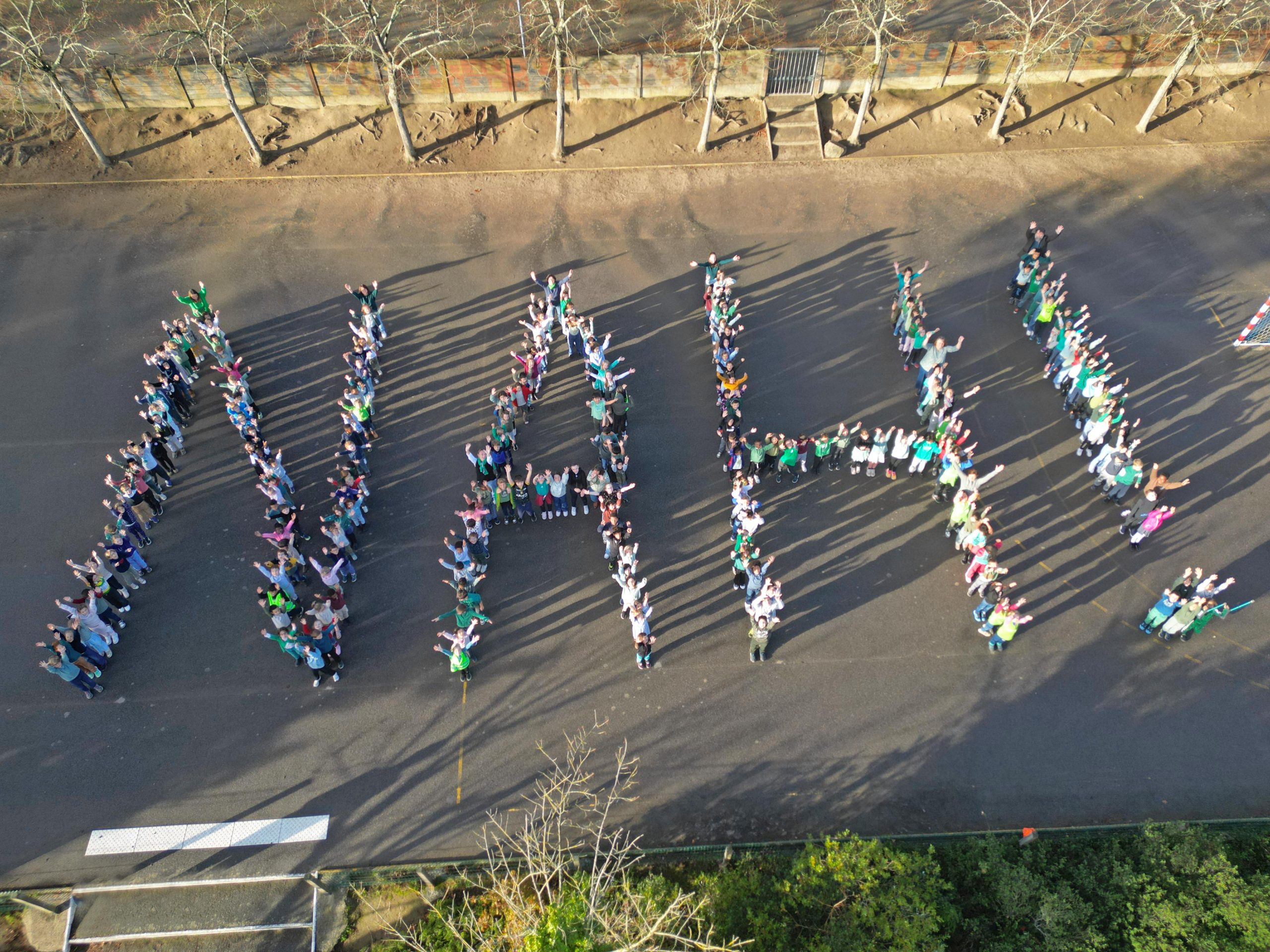 Le jeudi 6 novembre était la journée nationale de lutte contre le harcèlement à l’école. C’était l’occasion de retravailler ce sujet dans chaque classe pour faire de la prévention. Pour ponctuer cette réflexion, les élèves du CP au CM2 se sont retrouvés sur la cour pour former NAH!, Non Au Harcèlement. Nous remercions notre photographe Niels Adde et l’APE qui nous a mis en contact.